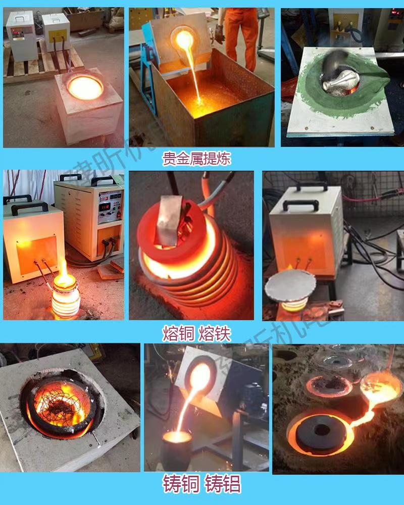 11. 中頻熔銅爐 適用于:熔銅貴金屬提純、熔鐵、熔鋁、鑄造、金精粉、銅泥、電解泥、三元粉末、撒珠造粒工藝、金屬渣灰熔煉、礦業冶煉、工業熔煉、非金屬冶煉、學校熔煉工藝試驗.....等。